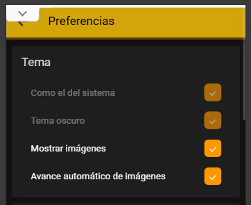 Si pulsas sobre la imagen te ofrecerá una nueva imagen relacionada con el filtro seleccionado. También puedes configurar que se te ofrezcan imágenes de forma automática, mostrándose una nueva imagen pasados diez segundos desde la última presentada. Para ello, pulsa sobre el icono de configuración, de la esquina superior derecha, y se abrirán las preferencias del usuario: