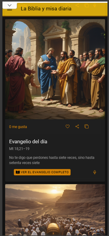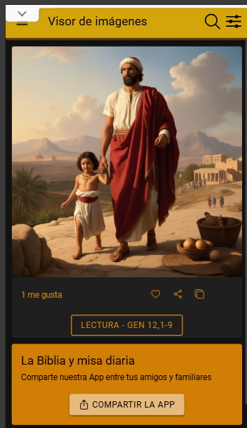 Las imágenes asociadas al evangelio y al resto de elementos, se muestran también en la página principal de la aplicación, donde se puede ver de un vistazo las lecturas más relevantes del día.