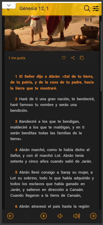 …donde pulsando en el recuadro en el que se referencia el libro y los versículos en los que está basado, te llevará al primero de ellos: